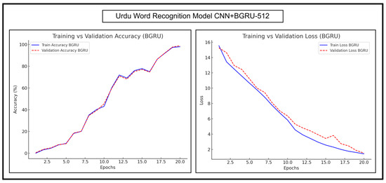 As shown in Table 6, CNN+BGRU-512 achieved 24.2%, 8.6%, and 4.2% improvements in Urdu CRR compared with existing models HOG [22], CNN [23], MLFF [24] on the dataset [13]. Similarly, CNN+BLSTN-512 achieved 25.1%, 9.5%, and 5.1% improvements. CNN+BLSTM-512 achieved better results than CNN+BGRU-512 [13].