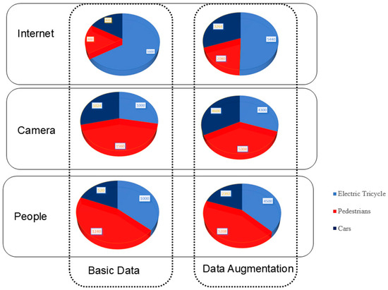The first component of our multi-source strategy involved web-scraped data acquisition. Images specifically featuring electric tricycles were acquired via the Baidu search engine, leveraging keywords such as “electric tricycle,” “tricycle,” and “electric vehicle.” To broaden the contextual diversity of the dataset, images of cars and pedestrians from the COCO dataset were subsequently incorporated. This combination yielded a substantial number of high-resolution, diverse traffic scene images featuring electric tricycles alongside other relevant objects, including various vehicles, pedestrians, and traffic lights. These richly annotated scenes are inherently well-suited for deep learning model training. However, it is crucial to acknowledge the inherent limitations of web-scraped data, including potential copyright infringements and inconsistencies in data quality. Consequently, strict adherence to all applicable legal regulations and ethical guidelines was maintained throughout this data collection process.