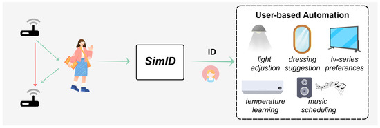 The rapid advancement of smart home technologies has fueled the demand for highly personalized services that enhance the user experience [1,2]. As shown in Figure 1, through user identification and intelligent automation systems, homes now proactively adapt to individual preferences: lighting adjusts to optimal brightness levels [3]; thermostats regulate indoor temperatures according to users’ behavioral patterns [4] and entertainment systems initiate customized playlists by analyzing historical usage data—all achieved without requiring manual intervention [5,6].