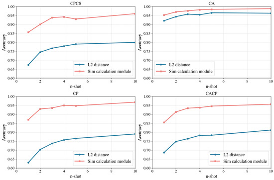 Furthermore, as n increases, the model’s accuracy tends to improve, suggesting that with more support samples, the model makes fewer errors. However, this improvement becomes less pronounced at higher n. For example, the performance gain from 1-shot to 2-shot is more significant than the gain from 5-shot to 10-shot.