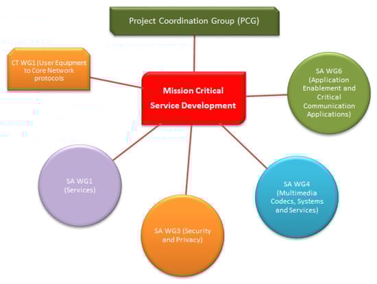 SA6—Application Enablement and Critical Communication work group has the lead for mission-critical applications in the 3GPP standardization process. Its work started in 2014 with version 13 and since then it has been involved in MCX standardization efforts. The evolution of MCX standardization is presented in Table 1.
