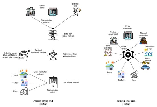 The typical topology of a power grid today and tomorrow is presented in Figure 3.