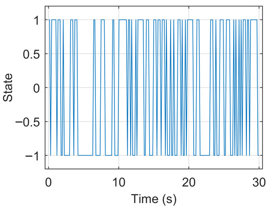 The GBN test signal was applied to the roll and pitch axes separately and simultaneously. The GBN test signal applied separately to the roll and pitch axes is shown in the time domain in Figure 10a,b.