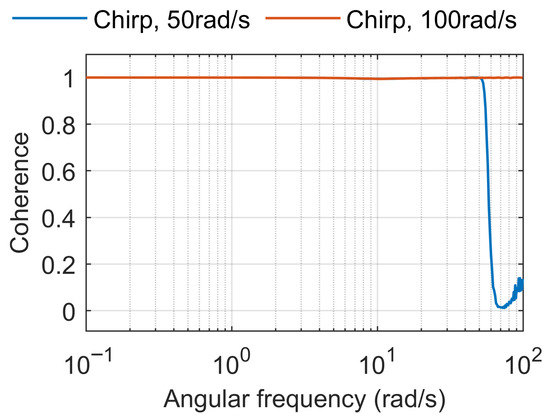 Figure 9 shows a comparison of the composite coherence obtained from the chirp input covering the full frequency range of interest versus the chirp input applied over a shorter frequency range. As expected, the composite coherence of the full-range chirp remains close to one across the entire frequency range of interest, whereas the coherence of the shorter-range chirp drops close to zero beyond its excitation range.