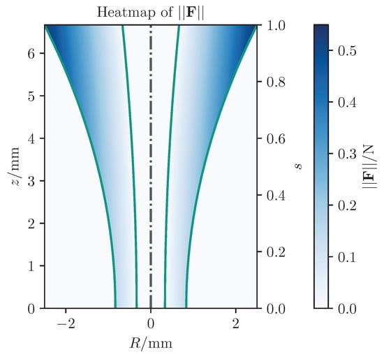 Additionally, Figure 10, Figure 11 and Figure 12 show the corresponding trajectories. As depicted in the center of Figure 11, the classical potential-field approach produces oscillations caused by its constant feedback gain. In contrast, the trajectory obtained with the proposed method is noticeably smoother, demonstrating that the operator remains closer to the primary cutting axis; see Figure 12. When no supportive feedback is applied (center of Figure 12), movement toward the target point becomes non-linear.