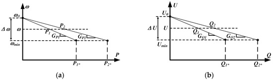 In islanded mode, droop control enables each DG unit to operate independently, thereby realizing a true “plug-and-play” capability without the need for internal communication. This study focuses on a droop control scheme that links active power to frequency (P–ω) and reactive power to voltage (Q–U), assuming that the output impedance of the inverter is mainly inductive.