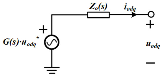 where Kpv represents the voltage loop proportional gain, Kiv the voltage loop integral gain, Gi the current loop proportional gain, and Kpwm an inverter gain factor that scales with the output voltage. With these parameters defined, the inverter can be represented as a two-terminal Thévenin equivalent circuit, as depicted in Figure 7.