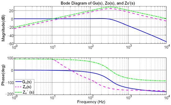 System and controller parameters are listed in Table 1. Figure 8 displays the magnitude and phase response curves of variables Gu(s) and Z’o(s), confirming that the closed loop is stable. At the fundamental frequency, the voltage loop gain Gu(s) = 1, enabling the output voltage to match its reference without a steady-state error. Moreover, Z’o(s) has a larger amplitude margin than Zo(s), resulting in better voltage stabilization when the load changes abruptly, and the high output impedance can suppress the loop current, making the power distribution more accurate. Z’o(s) has a large phase angle margin, which is less prone to oscillation and overshooting, and the system stability is high. At the same frequency, variable Z’o(s) shows a phase lead of roughly 90°, giving the network a much stronger inductive character than in the case of Zo(s). The inclusion of virtual impedance thus achieves effective power decoupling and allows the overall output impedance to be treated as an ideal inductance.
