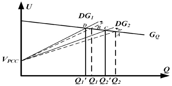 Based on Equations (10)–(15), the reactive power sharing error eQn for two DG units operating in parallel is expressed as