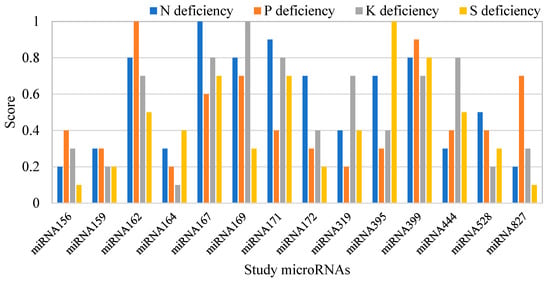 The scores of microRNAs in predicting the severity of nutrient deficiency.