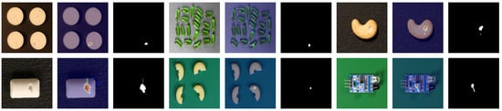 - Bergmann, P.; Fauser, M.; Sattlegger, D.; Steger, C. MVTec AD—A comprehensive real-world dataset for unsupervised anomaly detection. In Proceedings of the IEEE Conference on Computer Vision and Pattern Recognition, Long Beach, CA, USA, 15–20 June 2019; pp. 9592–9600. [Google Scholar]