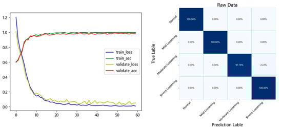 The sanitized vibration data was divided into samples with 1024 data points each. To expand the dataset, a sliding window data augmentation method with a 0.5 overlap ratio was used, and it was then partitioned into training, validation, and test sets in the ratio 0.7:0.2:0.1.