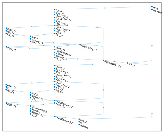 CBAM models the relationships between different channels to learn the important weights of each channel while also focusing on the spatial dimension by learning the weights of each pixel position to emphasize important regions in the feature map. Introducing a CBAM layer after the TCN layer enables the TCN to focus more on the important features in the feature map, improving the network’s expressive capabilities and performance, which is beneficial for enhancing the accuracy and robustness of fault diagnoses.
