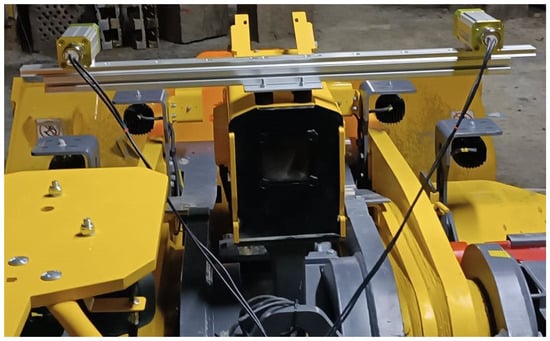 For the tests and demonstration of the system, an Epiroc Scooptram ST14 (Epiroc, Stockholm, Sweden) was used. It has a loading capacity of 14 t [19]. An image of the machine is shown in Figure 5. The muck pile detection system was integrated into a larger loading system, enabling the machine to complete the whole process autonomously without a driver while being supervised remotely.