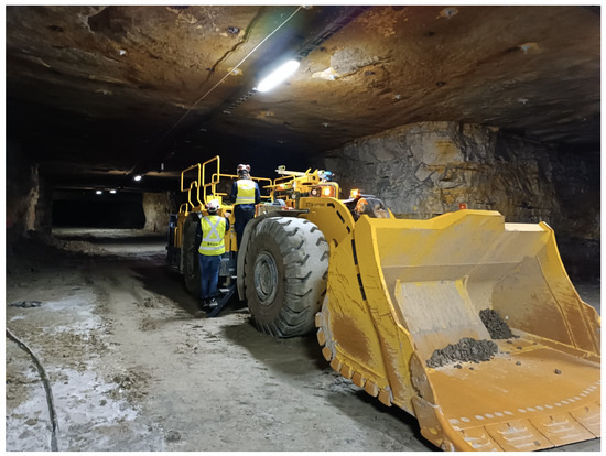 Load–haul–dump (LHD) machines are commonly used in underground mines for short-distance material transport. These rubber-tired, articulated machines load material from muck piles in working faces and haul it to dumping locations. The first type of this machine was invented by Wagner at the end of the 1950s [1,2]. According to Tatiya [3], nowadays, over 75% of the world’s underground metal mines utilise LHDs. As every mine is unique, to address the specific customer needs, LHDs are available on the market with various bucket sizes, designs, and features.