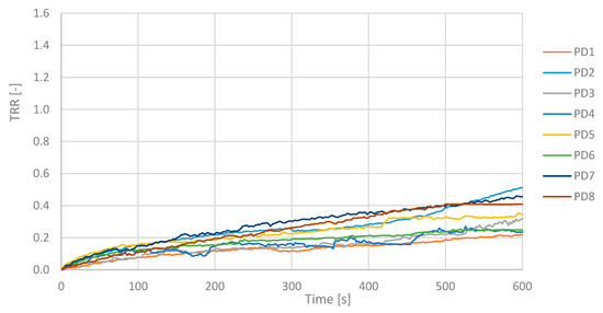 In Figure 7 and Figure 8, the TRR values as function of the acquisition time for all subjects are shown for CS (Figure 7) and PD (Figure 8) subjects.