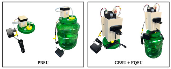 To facilitate accurate fermentation monitoring, three modular sensor units were independently developed and structurally integrated with the fermentation vessels. Their finalized mechanical configurations are shown in Figure 6. The PBSU was designed to detect pressure variations during fermentation. A 10 L commercially available cylindrical PET tank served as the fermentation chamber, sealed with a valve-equipped lid. A silicone tube connected the valve to a pressure sensor housed in a custom 3D-printed enclosure, ensuring airtightness and accurate data collection. The GBSU, mounted on top of the FQSU airlock, was equipped with gas sensors to monitor fermentation gas emissions. The FQSU also employed a sealed PET tank connected to a twin-bubble airlock via silicone tubing to maintain internal pressure stability. To ensure reliable image acquisition for computer vision-based analysis, the area surrounding the airlock was darkened to minimize interference from ambient light. All three sensor units were assembled using commercially available, low-cost components suitable for laboratory-scale experimentation; however, their design and data acquisition principles allow for straightforward replacement with industrial-grade equivalents, enabling seamless adaptation for large-scale fermentation monitoring.