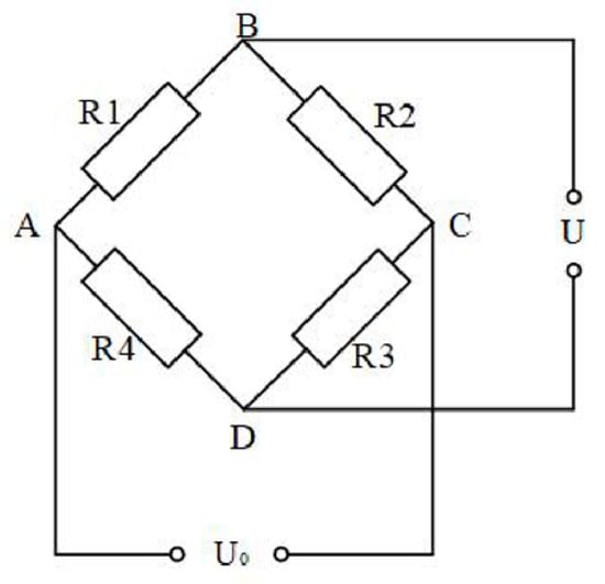 When the resistance R1 of the strain gauge changes by an amount ΔR, the output voltage U of the Wheatstone bridge can be calculated using the following equation: