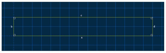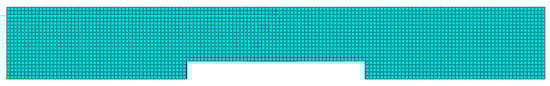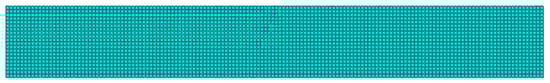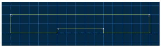 The two models were respectively configured as an intact specimen and a specimen with a prefabricated defect measuring 50 mm × 5 mm. These were designated as S1 (intact specimen) and S2 (specimen containing a 50 mm × 5 mm defect). The interlaminar stacking configuration of the laminates is shown in Figure 3. The modeling approach involves creating a 3D deformable solid extrusion model in ABAQUS. First, a 150 mm × 20 mm rectangular cross-section is sketched, as shown in Figure 4. The intact specimen model is obtained by extruding this sketch by 3 mm. Next, a 50 mm × 5 mm rectangular defect is introduced on side a of the cross-section sketch, while sides b, c, and d remained unchanged.. Unnecessary edges are removed using automatic trimming, as shown in Figure 5. Finally, the specimen model with a prefabricated defect is generated by extruding the modified sketch by 3 mm. Mesh generation for both the intact specimen and the notched specimen is depicted in the accompanying Figure 6 and Figure 7.