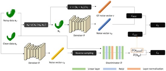 where controls the influence of the adversarial signal. This adversarial extension encourages the generator to produce denoised point clouds that not only minimize numerical reconstruction error but also align with the distribution of real clean point clouds.