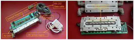 In this equation, represents the shear modulus of quartz (2.947 × g/cm), denotes the quartz density (2.648 g/), n is the harmonic number at which the crystal is driven, and is the fundamental resonant frequency of the quartz crystal. The dissipation factor is determined by taking the reciprocal of the resonance quality factor, as expressed in Equation (3).