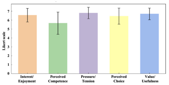 Results of the five subscales of the Intrinsic Motivation Scale. (Error bars indicate the standard deviation of the subscales.).