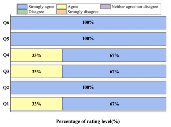Based on the user questionnaire (refer to Figure 12), subjects consistently agreed or strongly agreed with all survey statements, indicating the system’s utility, engagement, operational fluency, and appropriate complexity. Additionally, they expressed a willingness to re-engage with the system for further training.