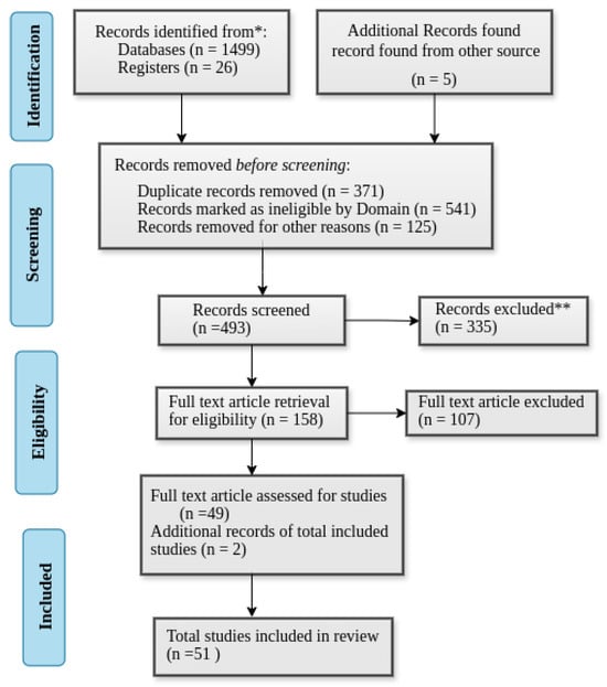 We used the PRISMA 2020 framework depicted in Figure 3 that shows the flow diagram for the paper organization process collected from the research database and other sources. It shows every step followed to organize our records.