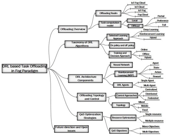 The remainder of this paper is organized as follows: Section 2 provides background information and reviews related work. Section 3 outlines the research methodology. Section 4 presents the findings and the analysis. Section 5 discusses the DRL-based task offloading architecture in fog computing environments. The subsections of (Section 5) also extend the discussion with the details of DL, RL, and DRL taxonomy, DRL algorithms, task execution models, and applications of DRL-based task offloading in fog computing. Section 6 discusses DRL approaches integrated with QoS optimization strategies. Section 7 highlights future research directions and open issues. Section 8 concludes the paper.