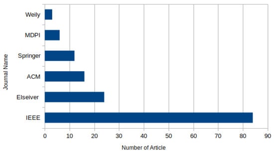 Regarding dissemination channels, there is a significant divide between conference and journal publications. Conference proceedings account for the majority, approximately 60%, of the research output, with IEEE-sponsored venues such as ICC, INFOCOM, and Globecom being the most prominent. These platforms are particularly preferred for the rapid dissemination of novel ideas and early-stage prototypes, often showcasing new DRL-based algorithms or architectures for task offloading. Journal publications, on the other hand—which make up roughly 40% of the literature—usually show up in high-impact venues like IEEE Access, ACM Transactions, and Elsevier’s Future Generation Computer Systems. These works tend to provide more comprehensive evaluations, real-world use cases, and longitudinal performance assessments, often addressing challenges like energy efficiency, service latency, and resource utilization in depth.