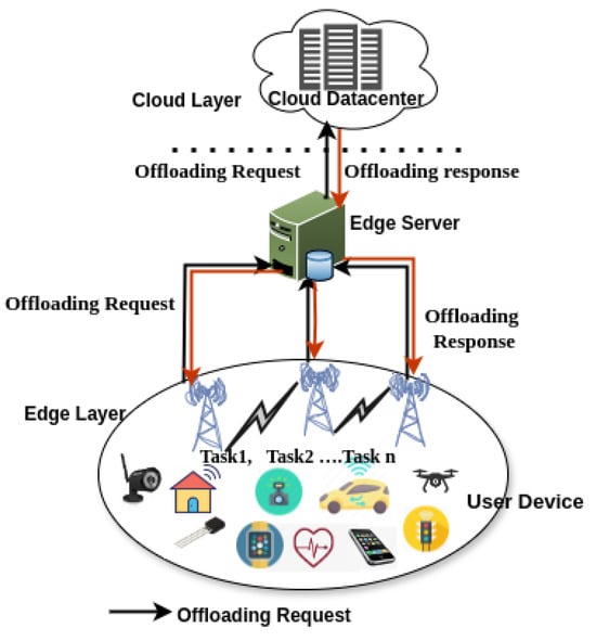 IoT devices, including consumer electronics (CE),TinyML-enabled systems, and unmanned aerial vehicles (UAVs), have seen widespread adoption across a range of industries. These network-connected devices are capable of sensing, processing, and communicating data. However, because they have limited computing power, they often need to offload tasks to more powerful systems to meet QoS requirements [1]. Task offloading refers to the process of transferring computational workloads from resource-limited devices to more powerful computing systems, based on a machine-to-machine collaboration model [2,3].