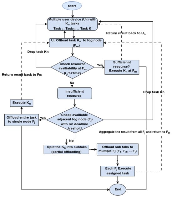 Lahmar and Boukadi [19] focus on heuristic, meta-heuristic, and exact matching optimization techniques for resource allocation in fog computing, aiming to enhance QoS for latency-sensitive applications. Hong and Varghese [20] provide a comprehensive classification framework encompassing fog computing architectures, infrastructures, and underlying algorithms. Similarly, Salaht et al. [21] examine the challenges of service placement and resource management in both edge and fog computing environments. Kar et al. [22] investigate task offloading in federated systems, offering a comparative classification of edge, fog, and cloud computing layers, along with a roadmap of offloading strategies tailored to different federated scenarios. Finally, Mukherjee et al. [23] discuss the use of cloudlets for mobile offloading, addressing both mobile and non-mobile application contexts. Most of these studies employ conventional centralized approaches for task offloading and resource allocation, where multiple smart user devices offload tasks to a central edge node for decision-making. While this model simplifies coordination, it limits the flexibility and scalability of task offloading in distributed fog computing environments.
