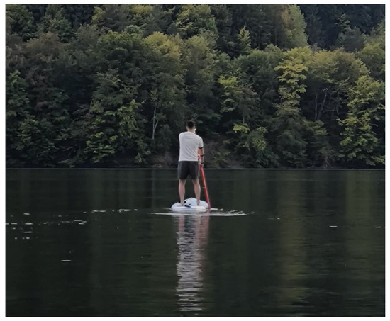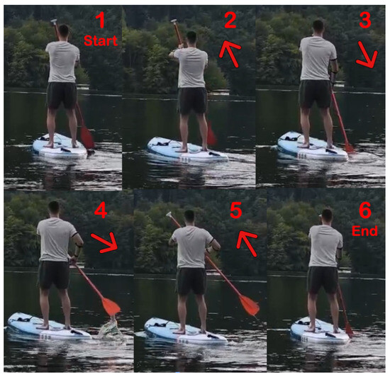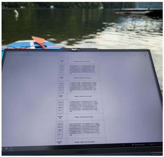 Figure 11 illustrates the testing of the voting routine. The image captures the position of the paddle, the paddleboard, and the user’s stance during the execution of the stroke.