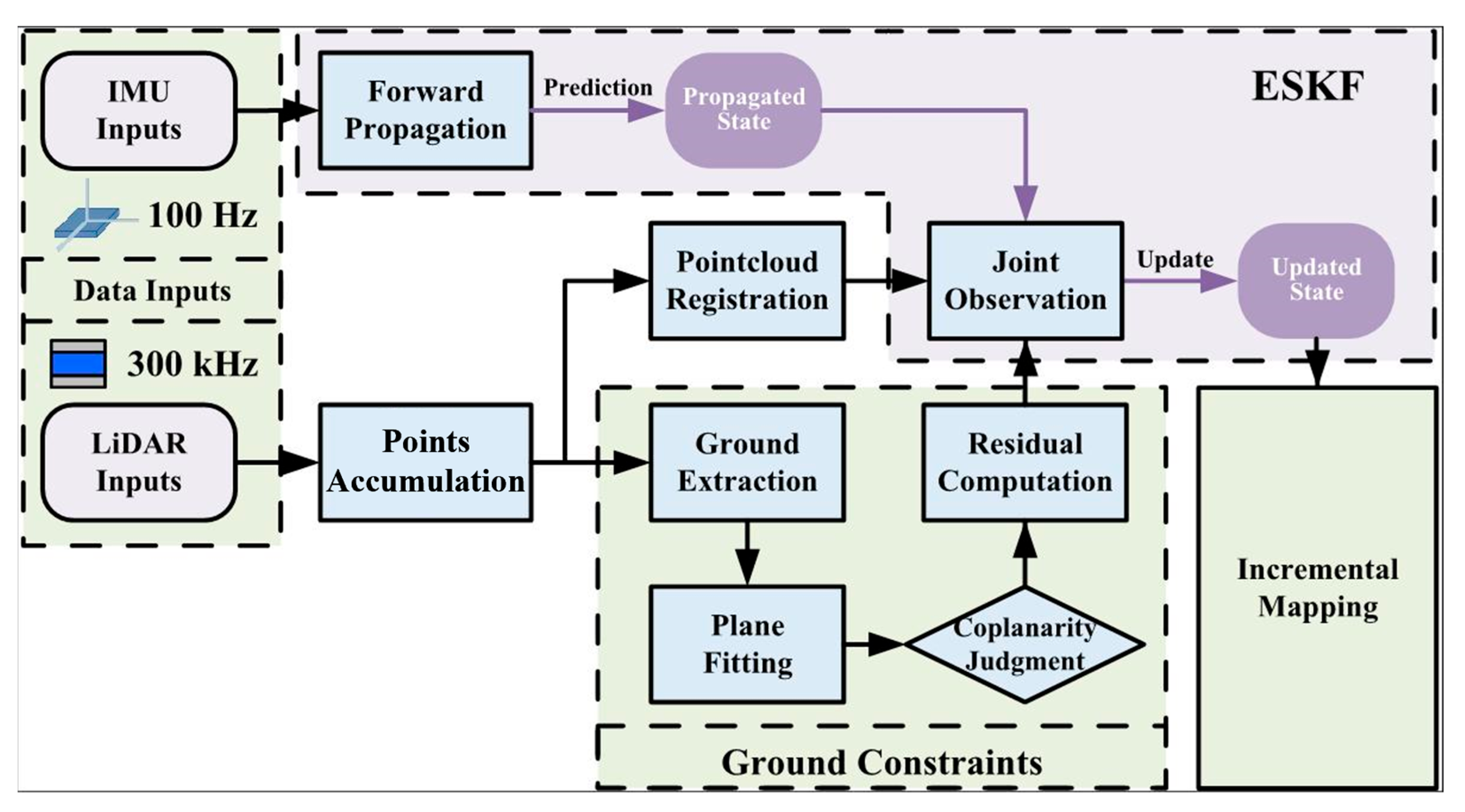 APA StyleFeng, Z., Chen, J., Liang, Y., Liu, W., & Peng, Y. (2025). Enhancing LiDAR–IMU SLAM for Infrastructure Monitoring via Dynamic Coplanarity Constraints and Joint Observation. Sensors, 25(17), 5330. https://doi.org/10.3390/s25175330
