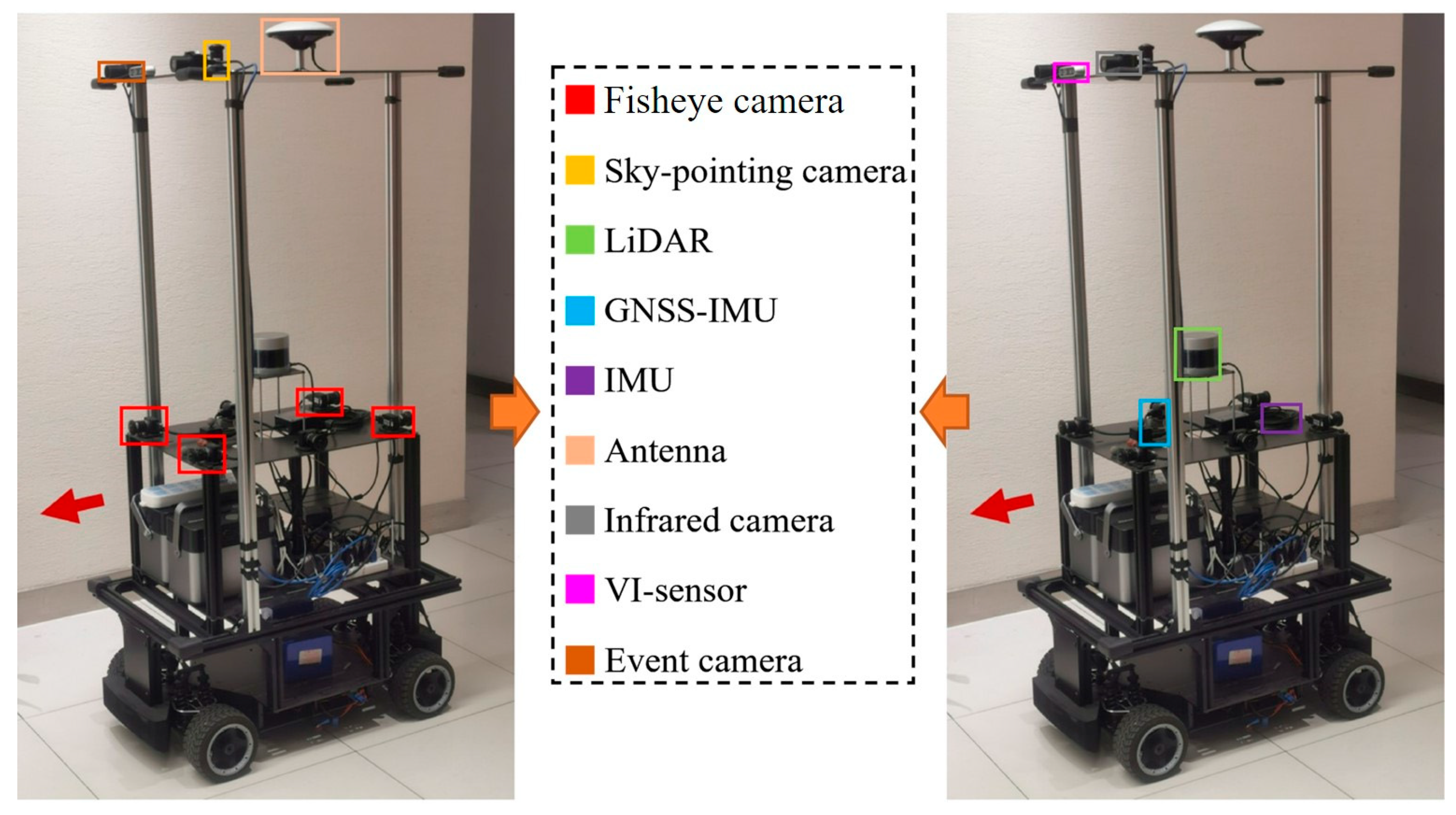 | GNSS-IMU | Xsens Mti 680 G | GNSS-RTK, Localization Precision: 2 cm, Sampling Rate: 100 Hz, IMU: 9-axis, 100 Hz |