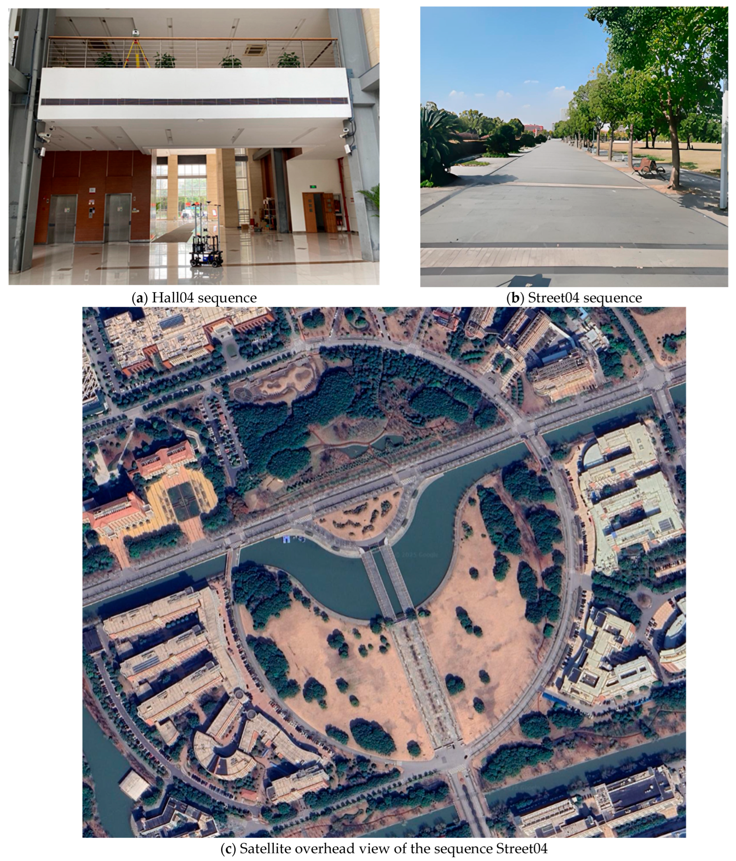 - Yin, J.; Li, A.; Li, T.; Yu, W.; Zou, D. M2DGR: A Multi-Sensor and Multi-Scenario SLAM Dataset for Ground Robots. IEEE Robot. Autom. Lett. 2022, 7, 2266–2273. [Google Scholar] [CrossRef]