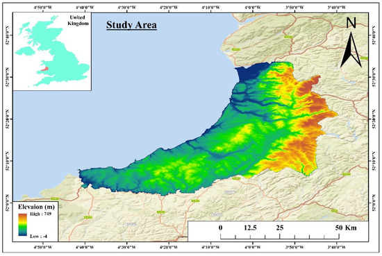 Figure 1 shows Ceredigion County. It is a largely rural county located in West Wales in the United Kingdom. Divided between rolling hills, coastal cliffs, and agricultural land, the landscape is a very varied landscape with a lot of history. Ceredigion covers an area of approximately 1795 square kilometers (latitude 52.1150° N to 52.4570° N and longitude −3.9890° W to −4.7970° W). Most relevantly, the city was given as having a population of around 70,000. The town of Aberystwyth is the county capital and an important administrative and economic center. Due to its proximity to the Irish Sea, Ceredigion has a temperate maritime climate. Temperatures are mild and warm in summer, and winters are cool, with annual variations of around 5 °C to 19 °C. Summer temperatures are mostly moderate, with July and August being the warmest and January the coldest. The average seasonal fluctuations are mostly moderate. Ceredigion’s rainfall is typically high at 1000–1500 mm per year, but it is variable across the county. The rainfall in the mountainous area is higher and heavier than in the coastal area. An excellent area to study ecological and thermal patterns of land use change and environmental sustainability is in a county with such distinctive climatic and geographical characteristics.