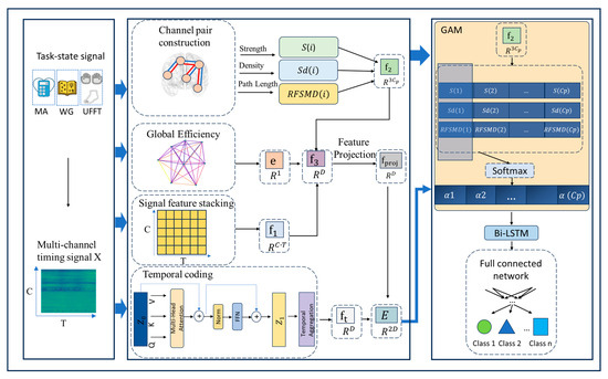 As illustrated in Figure 1, the proposed TopoTempNet framework is designed for multi-class time series signal classification. Its core innovation lies in a multi-level graph-theoretic feature extraction framework that quantifies inter-channel functional connectivity patterns (local associations and global network properties), integrated with a hybrid GAM-Bi-LSTM architecture for precise temporal pattern classification.
