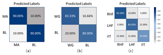 To verify the impact of scale differences in the feature fusion stage on the model’s classification performance, an ablation study was conducted to compare multiple strategies. Table 6 presents the classification accuracies (mean ± standard deviation) of different fusion methods on the MA, WG, and UFFT datasets. The results show that basic feature concatenation demonstrates a significant advantage: on the MA (90.04 ± 3.53), WG (78.33 ± 5.42), and UFFT (81.66 ± 3.23) datasets, its accuracy consistently outperforms Z-score normalized concatenation, min–max normalized concatenation, and fixed-weight concatenation. The latter three approaches, due to their forced intervention on the original feature distribution or weights, led to performance degradation on certain datasets (e.g., WG and UFFT). This indicates that the simple concatenation scheme adopted in this study, when combined with the model’s subsequent dynamic modulation mechanism, can effectively mitigate optimization bias caused by scale differences. By enabling a more natural feature integration, this strategy provides a reference for the design of feature fusion methods—namely, “lightweight intervention with reliance on module collaboration.”