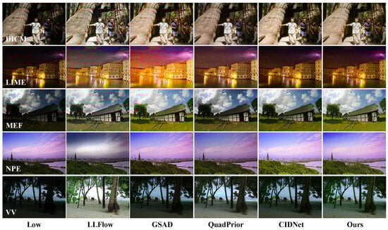 - Wang, W.; Yang, H.; Fu, J.; Liu, J. Zero-Reference Low-Light Enhancement via Physical Quadruple Priors. In Proceedings of the IEEE/CVF Conference on Computer Vision and Pattern Recognition, Seattle, WA, USA, 16–22 June 2024; pp. 26057–26066. [Google Scholar] [CrossRef]