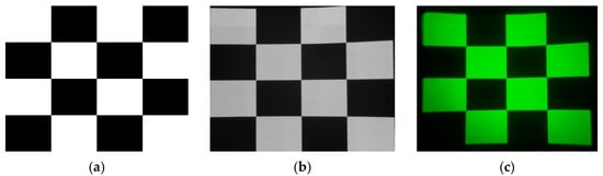 Display uniformity test patterns: (a) uniformity test pattern; (b) infrared camera-captured display image; (c) NVG-captured display image.