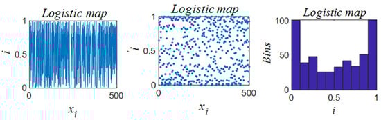 The operational effectiveness of ship rolling bearings is influenced by numerous factors, including the intricate design of the machinery, diverse operational conditions, and the prevailing vibration environment. These factors contribute to the likelihood of multi-location, multi-degree, and multi-type compound faults. To address the issue that HO algorithms are susceptible to local optimization in complex fault scenarios [38], this study proposes the implementation of logistic chaos mapping to enhance population diversity. this mapping generates pseudo-random behaviors in deterministic systems through nonlinear properties, and its sensitivity to initial conditions and parameter-modulated chaotic characteristics can continuously perturb the search process, thereby avoiding premature convergence. Figure 1 shows the distribution of the chaotic mapping. The efficacy of this method has been demonstrated in enhancing the algorithm’s capacity to identify composite faults and suppressing the impact of environmental noise while ensuring computational efficiency.