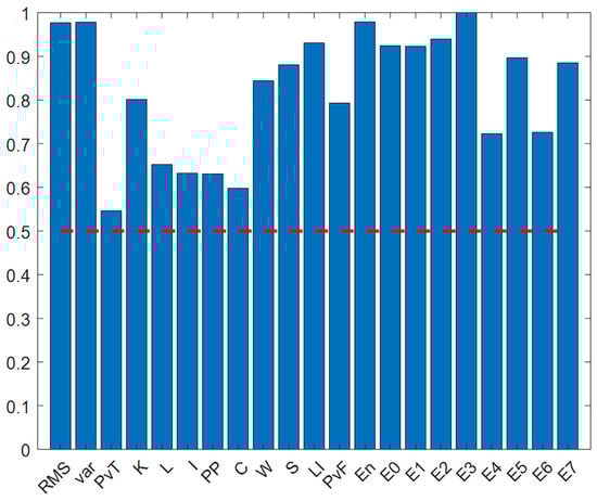 From the above chart, it can be seen that the Euclidean distance discrimination values are evenly distributed, with most greater than 0.5. There are 16 features greater than 0.5 and 16 features greater than 0.6, so the threshold strategies adopted are 0.5, 0.7, and 0.9.