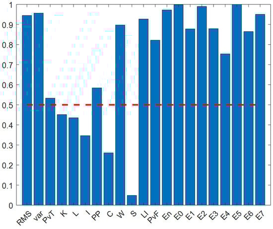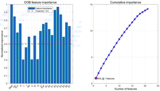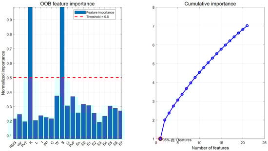 (2) Similarly, the OOB importance scores calculated using the random forest algorithm are shown in Figure 23. From the figure, it can be seen that the OOB importance distribution is uniform, so the TOP-K strategy is directly adopted, and the TOP-8, TOP-10, and TOP-12 importance scores are selected as three screening methods to generate a new feature dataset. Table 19 shows the normalized feature discrimination ability values of all features.