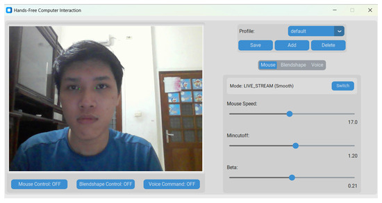 The main interface of the application is illustrated in Figure 6. Detailed information about the project and the source code of the project are available at: https://github.com/ndtuananh04/3-Modal-Human-Computer-Interaction (accessed on 16 July 2025).