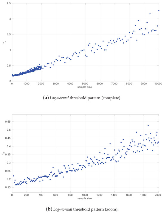 Despite its apparent simplicity, the problem of estimating the location of a Log-normal distribution is a hard one—even harder than for the Log-logistic distribution. Over the years, several proposals for that have been reported [36,37,38,39,40], all with their pros and cons. We selected the first Cohen’s modified method [37] because of its extended use and reasonable computational cost.