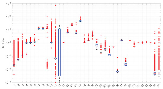 - Martínez, G.; Hernández, J.A.; Reviriego, P.; Reinheimer, P. Round Trip Time (RTT) Delay in the Internet: Analysis and Trends. IEEE Netw. 2024, 38, 280–285. [Google Scholar] [CrossRef]