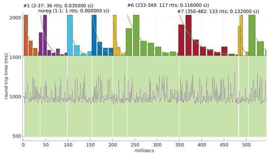 In addition, a number of general change detection methods that can be applied to the detection of abrupt regime changes in the RTT sequence exist in the literature [11,12,13]. However, many of these (i) require access to future data windows, leading to additional delays in detection—; (ii) do not offer rigorous statistical guarantees; or (iii) do not assume a particular parametric distribution of the data that carries out enough information about the RTTs and converge to the correct model with short samples.