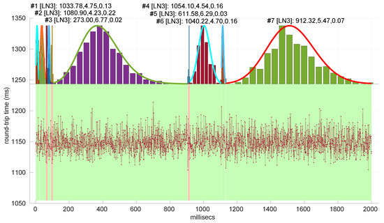 - Round-trip times are measured as discrete values, for instance, in milliseconds or in nanoseconds in the case of higher-resolution systems. The estimation procedures may be affected by this since the distributions we use are continuous, but using discrete ones would increase the computational cost considerably; thus we proceed with the continuous models. In Section 6.2 we include a more in-depth analysis of this issue.