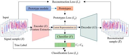 wherein , and represent classification loss, prototype loss, and reconstruction loss, respectively, while and are super parameters used to balance various losses.